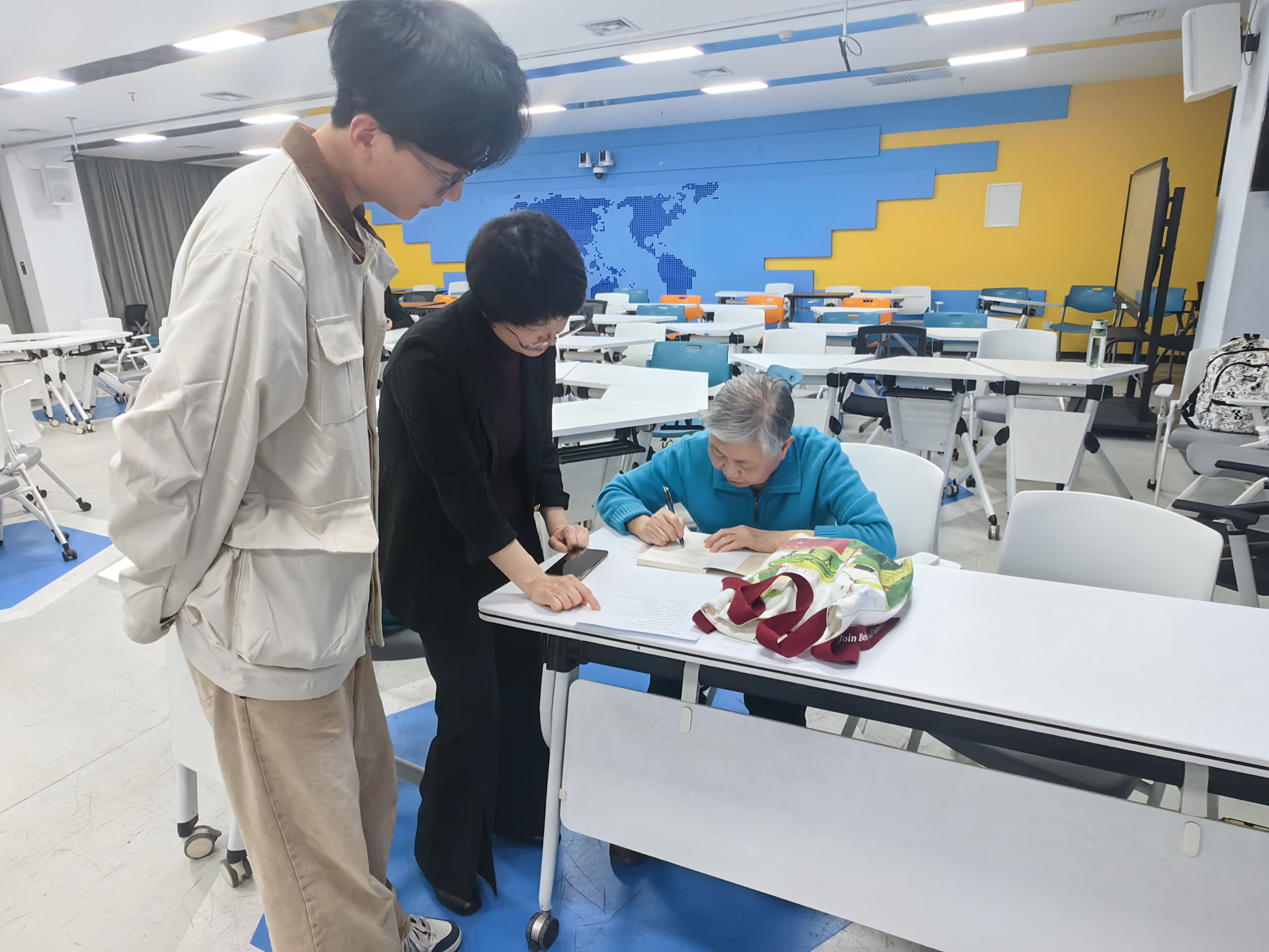 为了让同学们更直观地感受中华文化的魅力,雷航老师特别展示了朋友赠送她的用小篆书写的《永远的老子》全文,并赠送了亲笔签名的书籍给同学们,鼓励大家深入领会老子思想,努力成为中华文化的传承者和弘扬者。报告会最后,雷航老师与信科学院的师生合影留念。