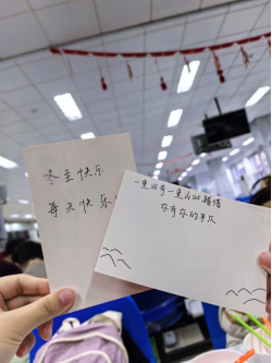 随着游戏环节的暂告一段落,锅中水汽氤氲,饺子也已下锅。此时,大家纷纷领取明信片,将美好的祝愿化作笔尖的温柔,传递给身旁的伙伴。一句“愿君安好”,一份“岁岁平安”,都承载着对未来的美好期许,于掌心传递,温暖彼此的心房。