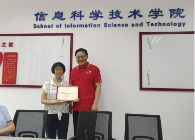 致辞毕,梁野书记代表学院郑重向应红老师颁发“教育成就奖”荣誉证书,红色证书上的烫金字体,既是对她半生耕耘的肯定,更是对教育初心的礼赞。紧接着,青年教师代表献上一束盛放的鲜花,花瓣上的露珠折射着晨光,恰如应老师多年来滋润学子心田的点滴付出,现场响起热烈的掌声。随后,全体教师合影,镜头定格下这一温馨瞬间。