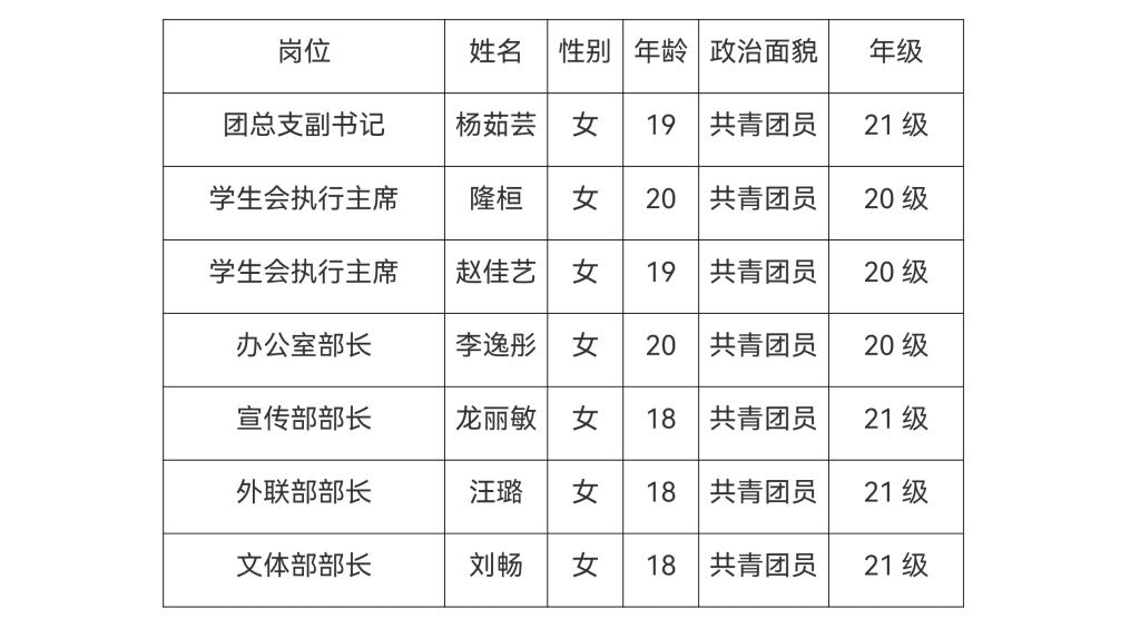 milan米兰官网团总支学生会第四届主席团和部长团名单