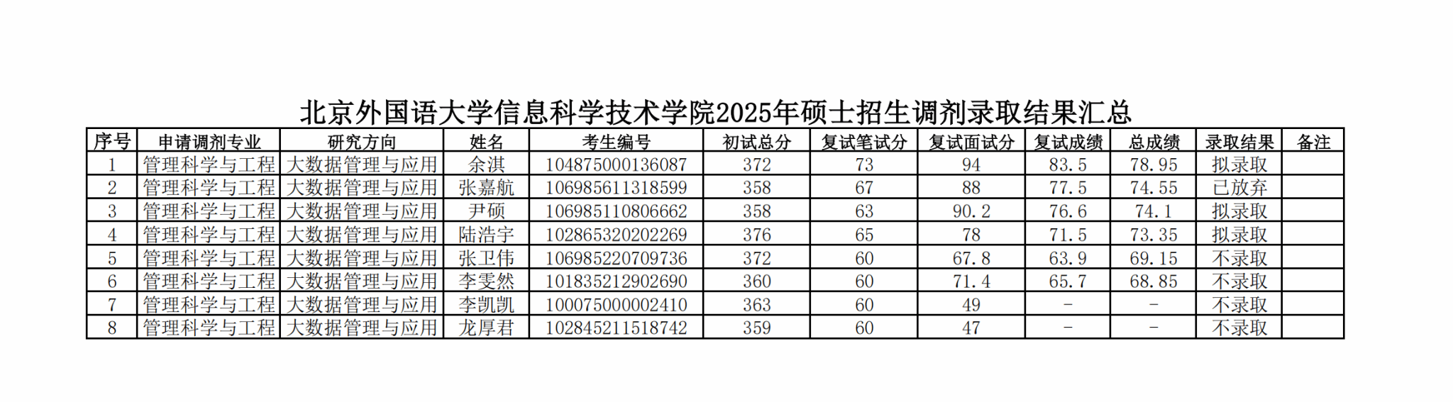 milan米兰官网2025年硕士招生调剂复试拟录取结果