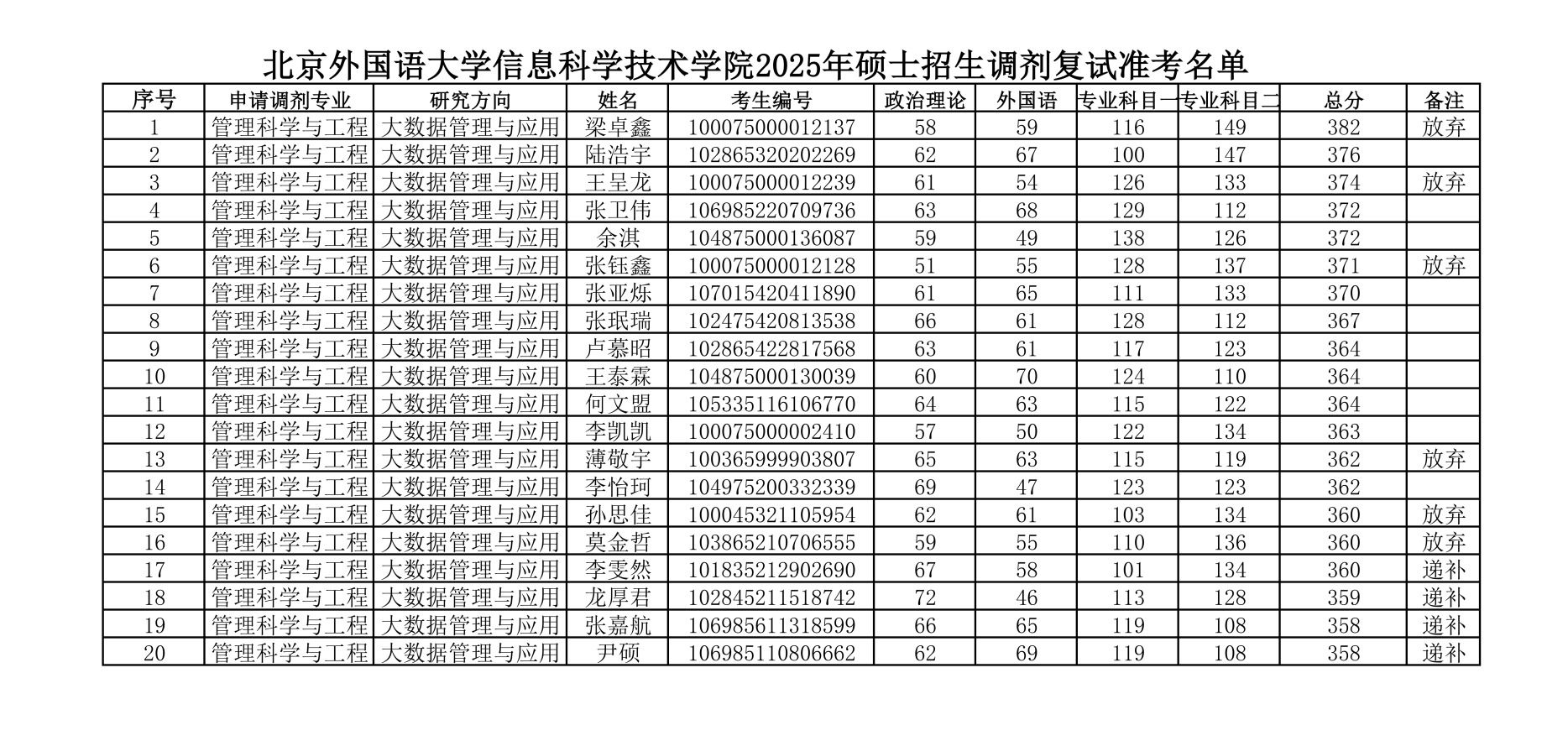 milan米兰官网2025年硕士招生调剂复试准考名单
